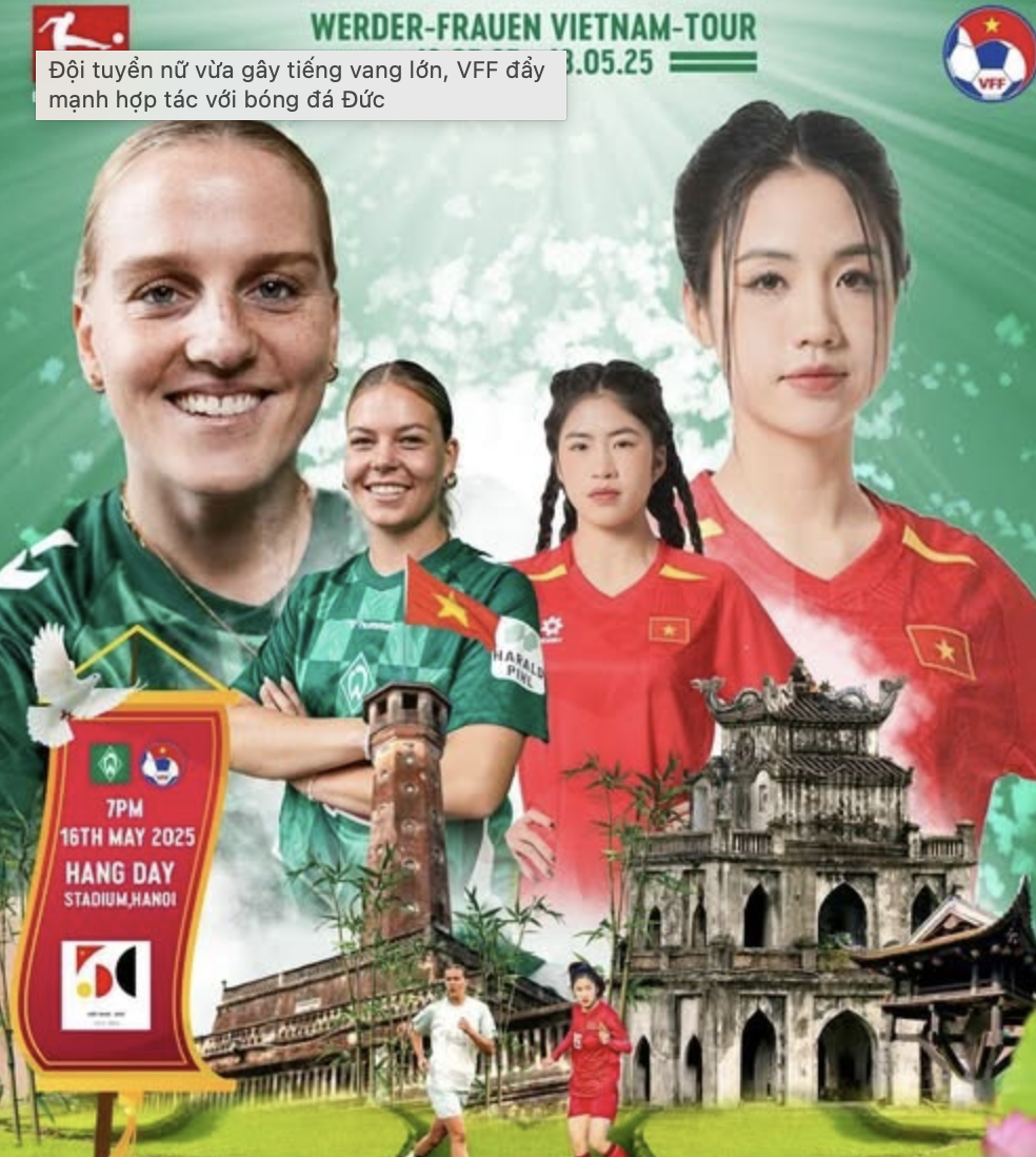 Ngày 16/5, tại sân vận động Hàng Đẫy, Hà Nội, đội bóng nữ Werder Bremen là đội bóng đá nữ đầu tiên của Đức đến Việt Nam thi đấu giao hữu với Đội tuyển quốc gia Việt Nam.