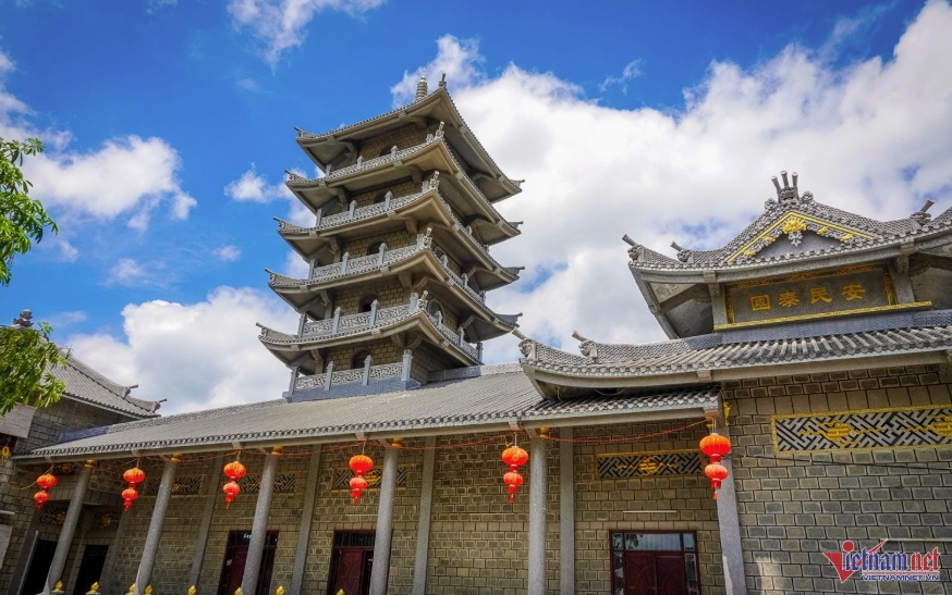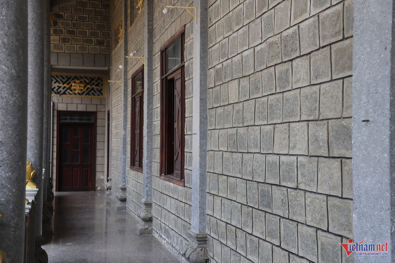 Các viên đá được xếp chồng lên nhau, giữ nguyên màu sắc thô mộc, tạo nên tổng thể kiến trúc vững chãi, bề thế nhưng vẫn toát lên sự thanh tịnh, trang nghiêm.
